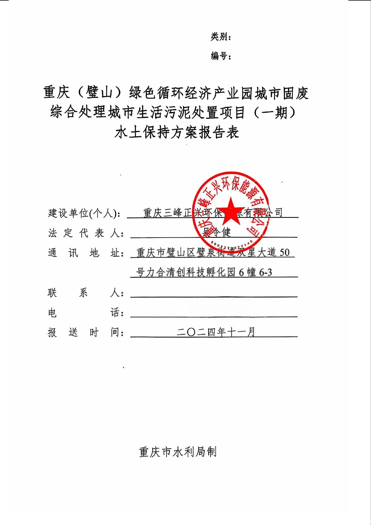 重庆(璧山)绿色循环经济产业园城市固废综合处理城市生活污泥处置项目(一期)水土保持方案报告表的行政许可